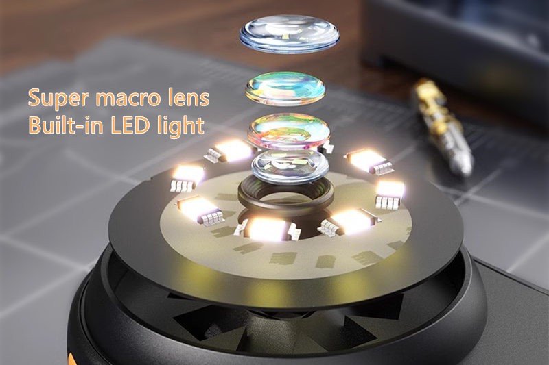 Ultra-macro lens + powerful LED fill light,