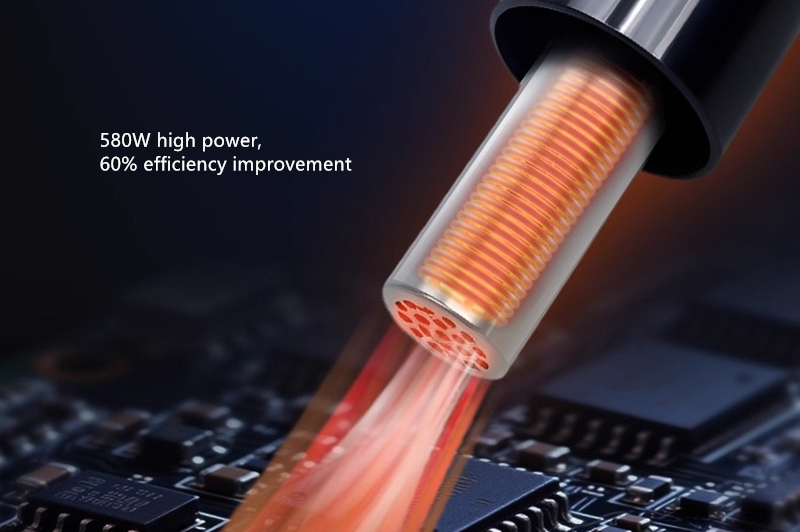 It features a 580W high-power hot air gun and a 50W constant-temperature soldering iron,