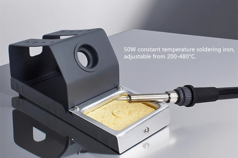 supporting precise temperature control from 100-450℃ (hot air gun) and 200-480℃ (soldering iron),